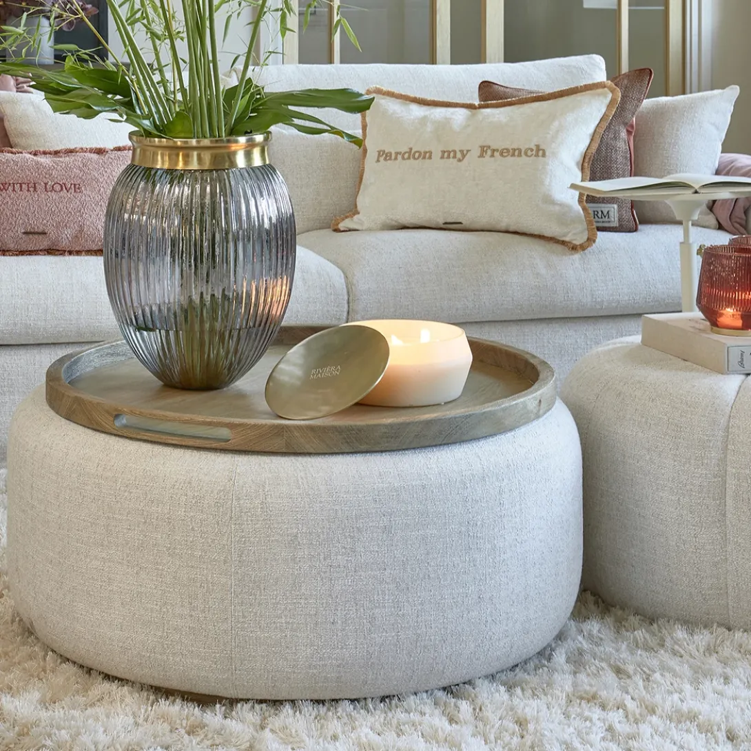 Wat een eyecatcher! De multifunctionele salontafel Babylon van Rivièra Maison is heel veelzijdig, zet hem in als poef, koffietafel of voetsteun. Schakel eenvoudig tussen ontspannen en entertainen. De prachtige Rich tweed stof in de kleur Antique white geeft deze beauty een chique look! Met een afmetingen van 91×43 cm past deze pouf met zijn prachtig doorleefde iepenhouten tray met opstaande rand perfect in elke woonkamer.