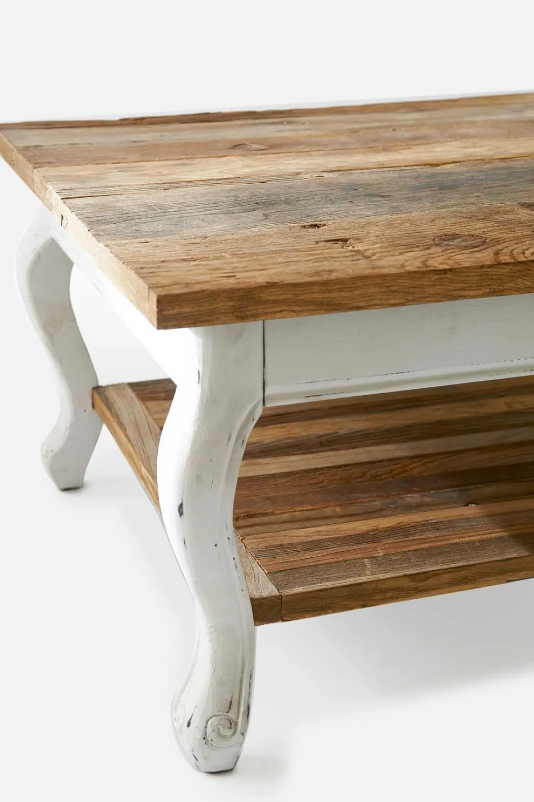 De tafelbladen van de Driftwood Collection zijn gemaakt van oude houten deuren; zelfs de afdrukken van de scharnieren en deurklinken zijn nog zichtbaar. Deze coffee table is ideaal als bijzettafel naast de bank. Plaats er een mooie lamp op, boek erbij, drankje bij de hand en geniet.