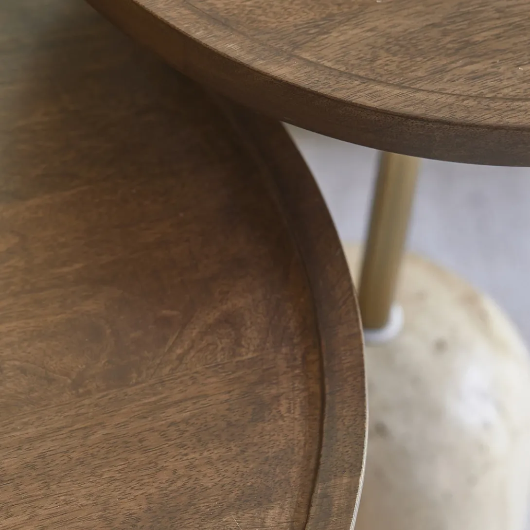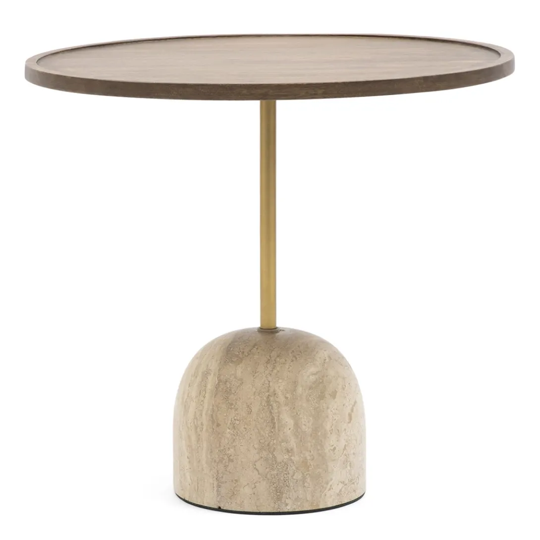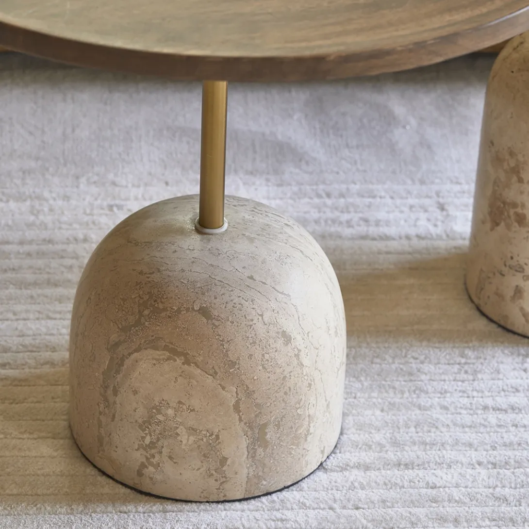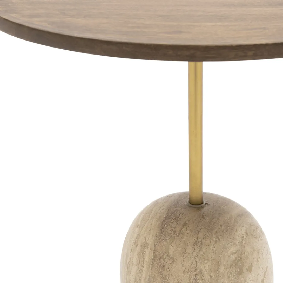 Design en gemak gaan moeiteloos samen met de Malibu salontafel. Het gebruik van mangohout, metaal en travertin zorgt voor een prachtige mix van texturen en kleuren. De base van travertin straalt design uit en de warme tinten van het mangohouten blad maken dit samen een unieke salontafel. Met een diameter van 50 cm en een hoogte van 55 cm past deze tafel perfect in elke ruimte. Er is een bijpassende bijzettafel verkrijgbaar.