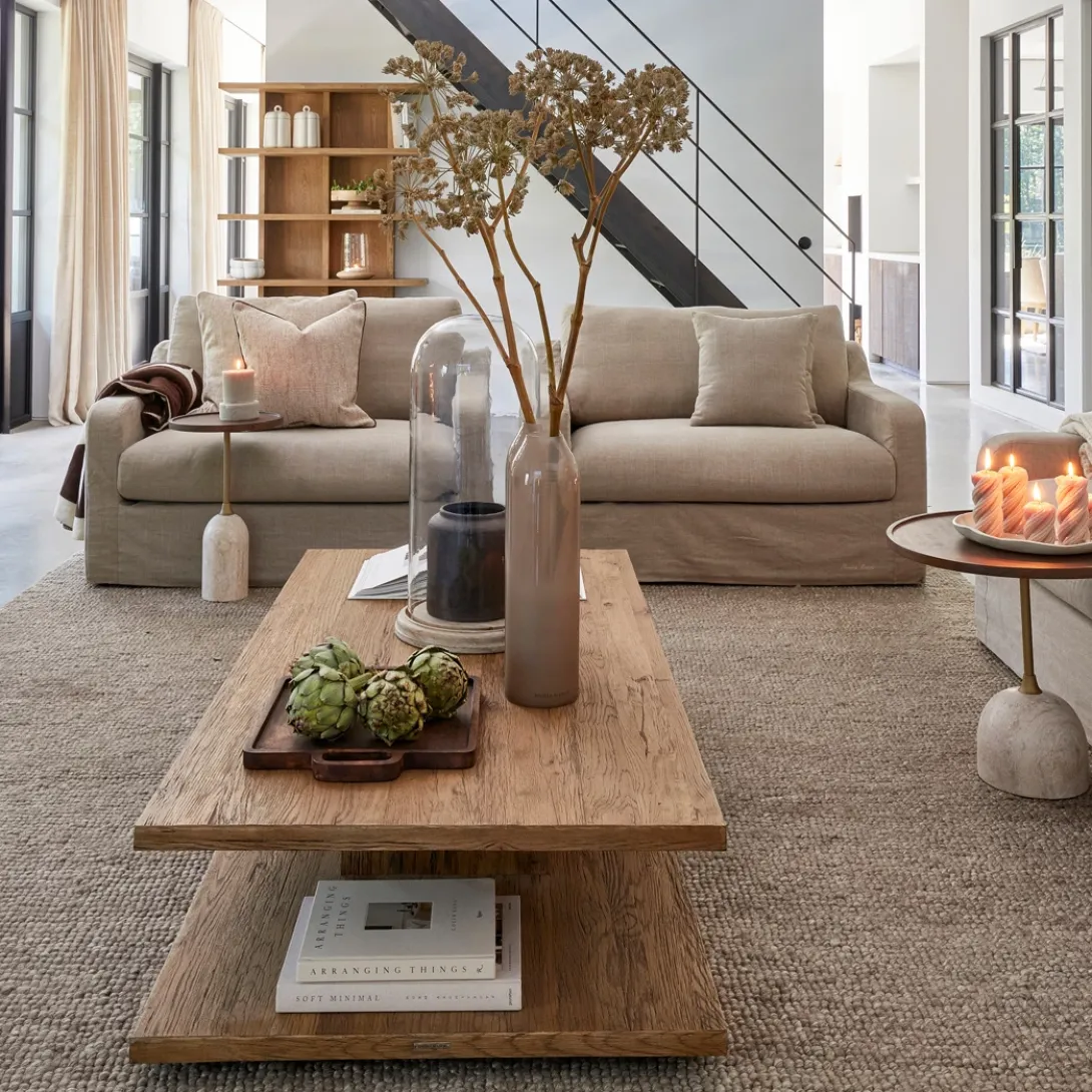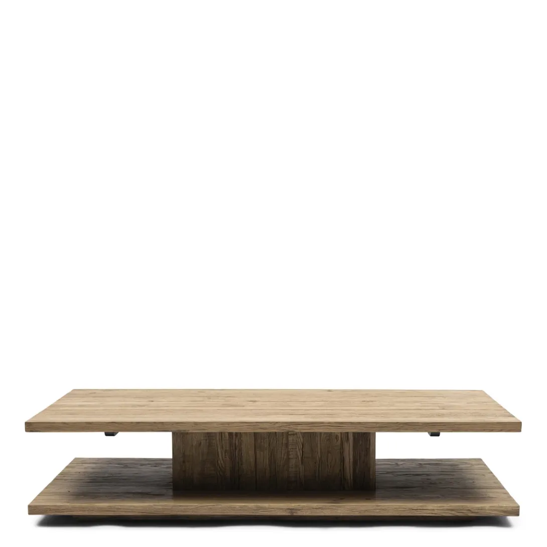 De salontafel Vermont ademt een rustieke sfeer uit in jouw interieur. Met zijn royale afmeting van 160x80x35 cm is deze tafel absoluut onmisbaar in een ruime woonkamer. Gemaakt van reclaimed eikenhout en voorzien van een centrale kolompoot. Dit geeft een heel ruimtelijk en modern effect. De verweerde look geeft het geheel een karaktervolle uitstraling. Een salontafel om jarenlang van te genieten!