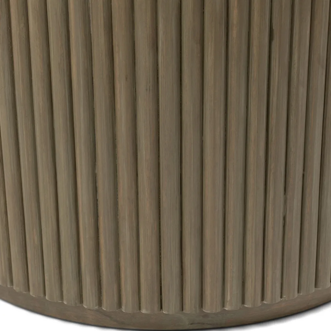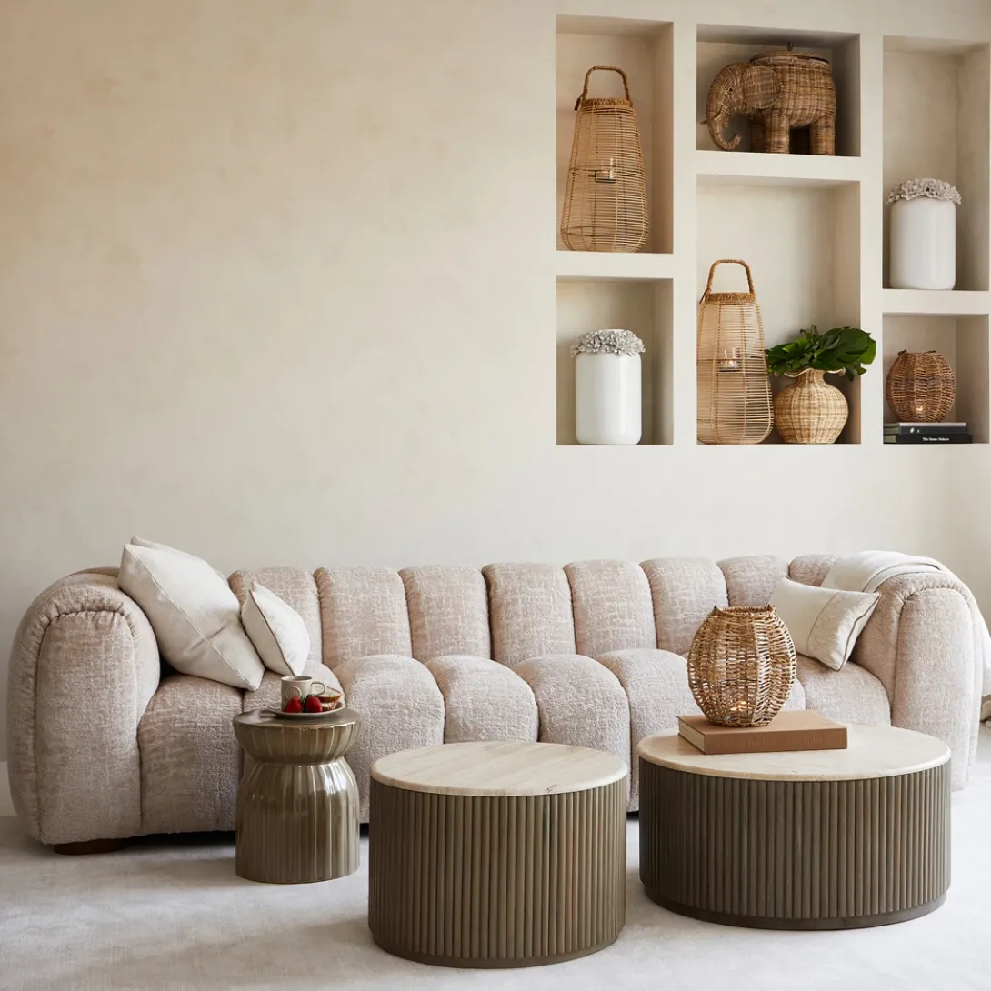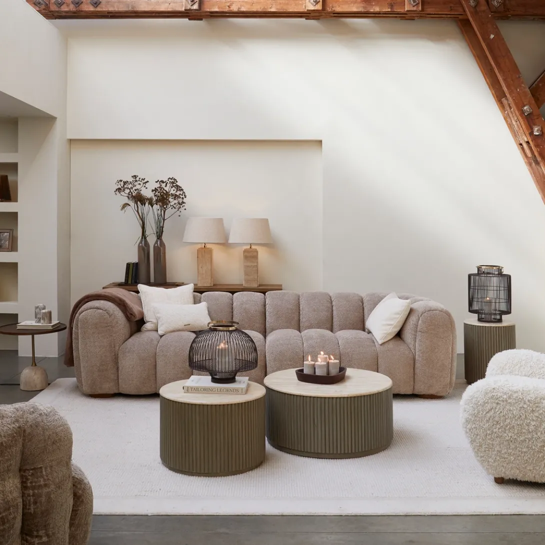 - Deze ronde salontafel voegt stijl en elegantie toe aan je woonkamer. Het travertijnen blad biedt een chique en tijdloze uitstraling, waardoor elke tafel uniek is. De brede voet, ingelegd met mangohouten stroken, zorgt voor een moderne look en voegt zowel stabiliteit als karakter toe aan het ontwerp. Deze salontafel is perfect om een luxe accent toe te voegen aan je interieur en vormt een prachtig middelpunt in jouw woonkamer.