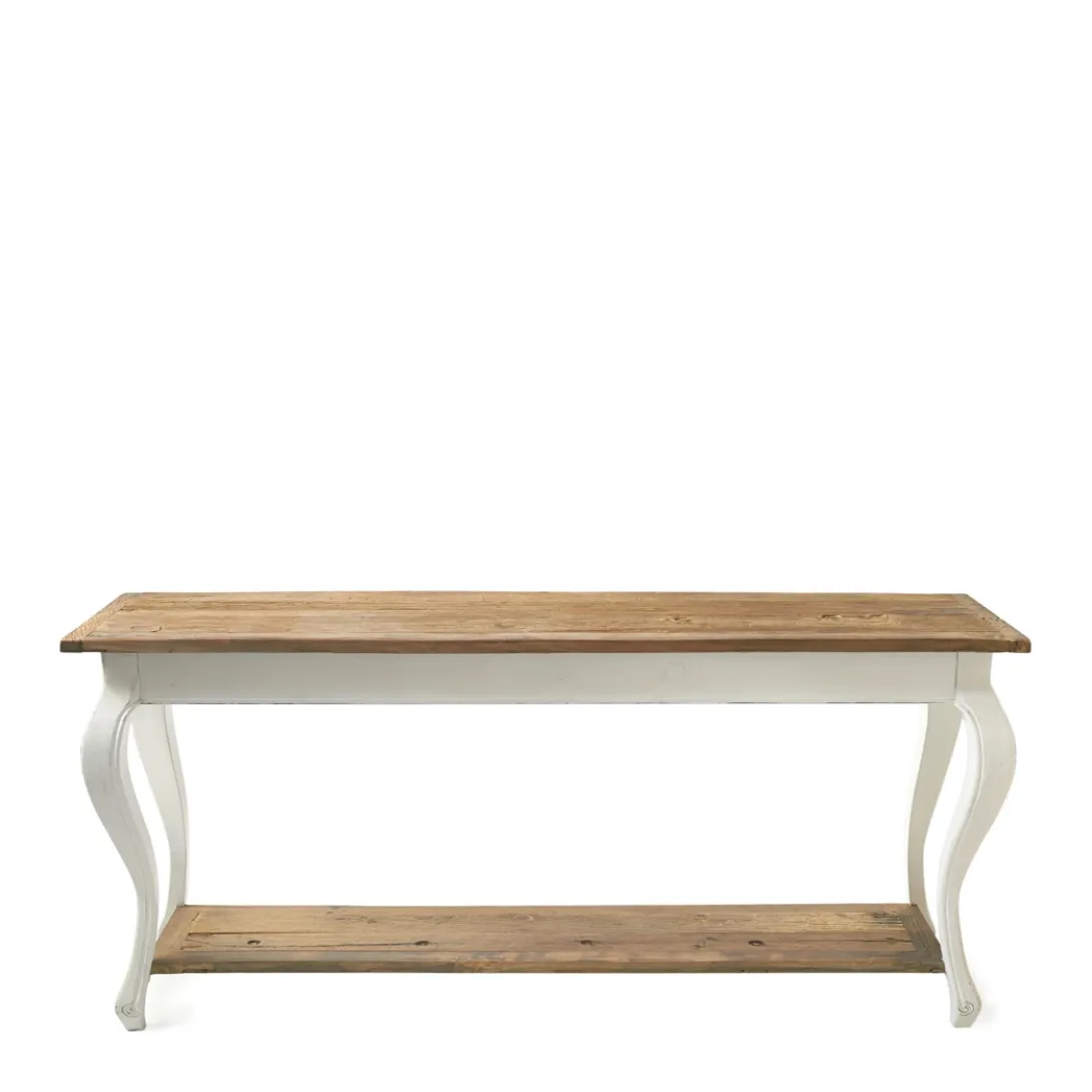 Het hergebruikte hout van de Driftwood tafelbladen deed ruim honderd jaar geleden dienst als schuurdeur. De afdrukken van scharnieren, sloten en deurkrukken zijn nog goed te zien. De deurdelen worden schoongeborsteld en verzaagd tot tafelbladen. Puur natuur en echt oud. Het onderstel is van wit geschilderd elzenhout.