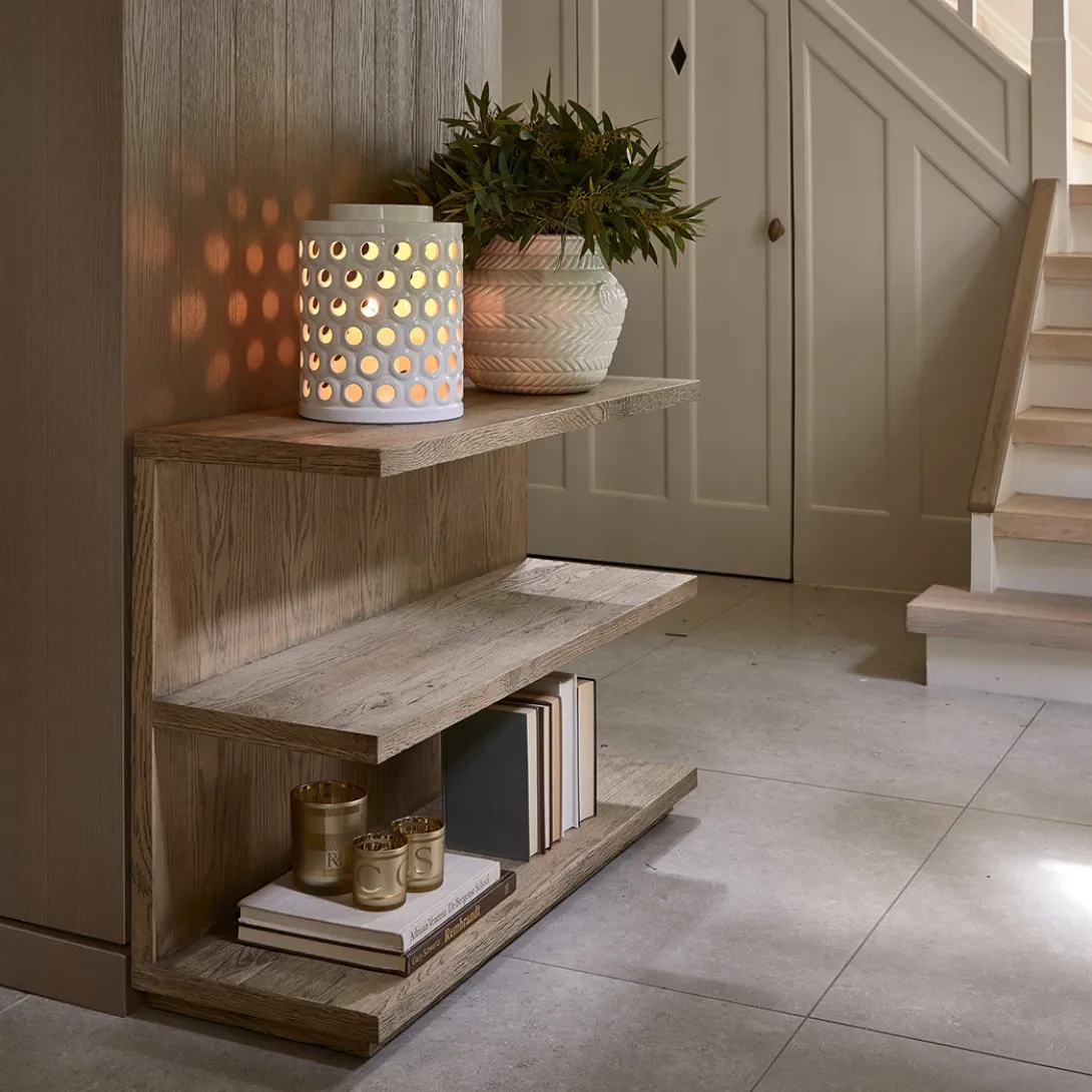 Haal rustieke schoonheid in huis met sidetable Vermont. De prachtige eikenhouten planken lijken te zweven en geven een moderne twist aan het ontwerp. Plaats hem tegen een muur of achter een bank voor een stijlvolle en functionele touch. Style zoals jij dat wil! Met zijn unieke verweerde look en afmetingen van 105x35x72 cm is dit meubelstuk een eyecatcher in elke interieur. Ook verkrijgbaar in 180x35x72. Let op: de sidetable komt met het tussenschotje in het midden zoals op weergeven op het sfeerbeeld.