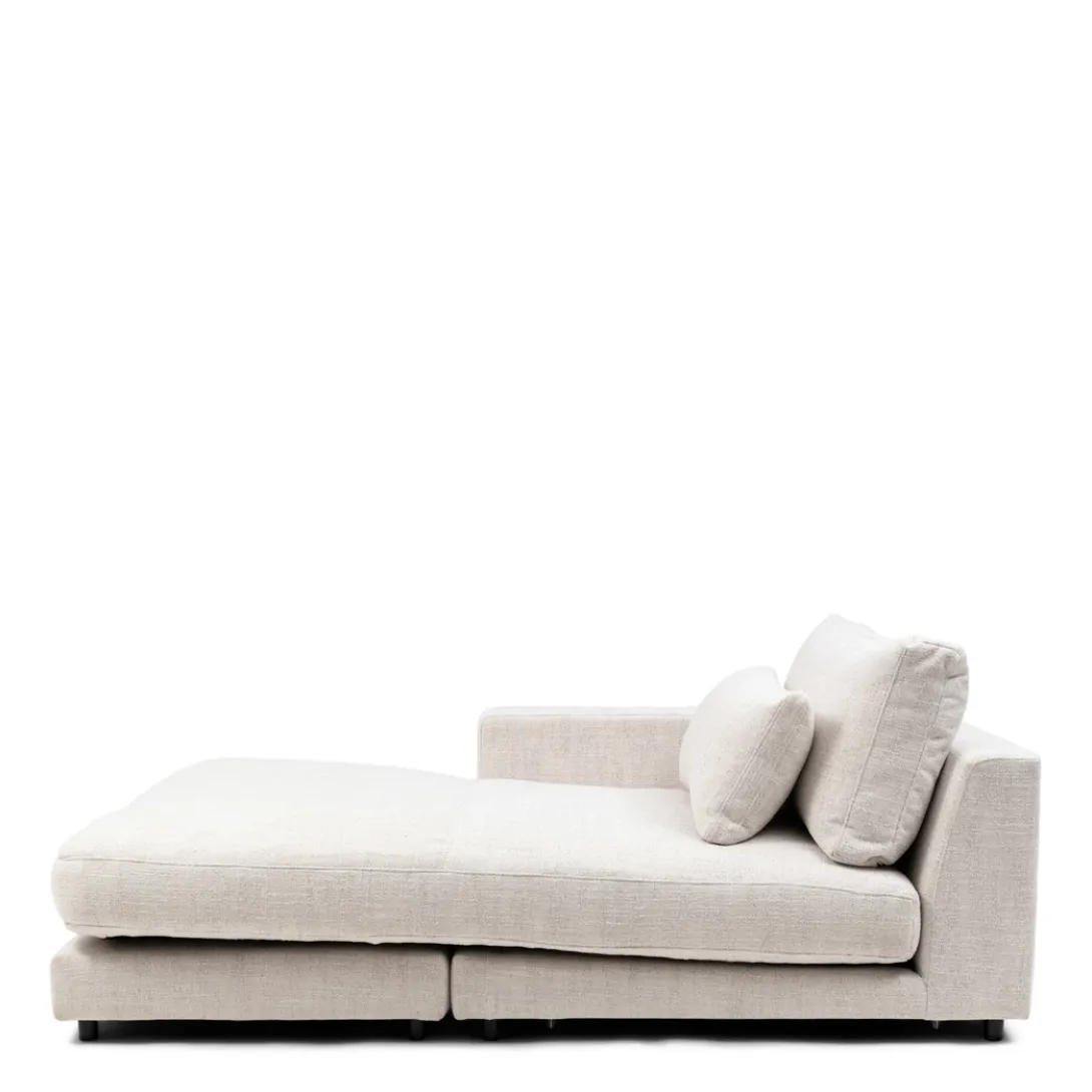 De Stephen-collectie is met deze chaise longue van de stof rich tweed in de kleur antique white helemaal compleet. Er is een variant voor aansluiting rechts en een voor aansluiting links, net wat bij jouw zithoek past. Maak je interieur helemaal af met dit stijlvolle meubelstuk. Het onderstel is van beukenhout.