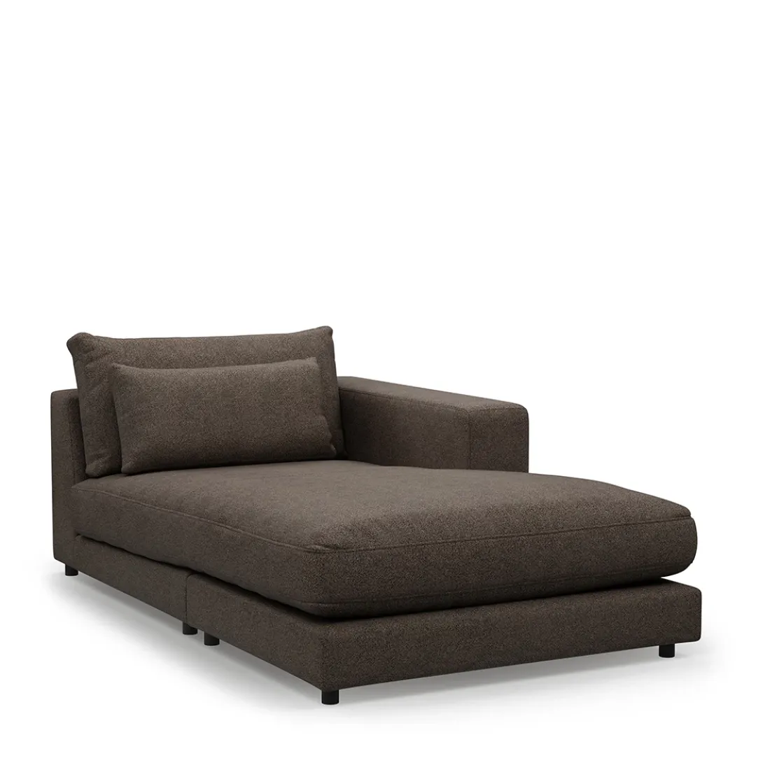 De Stephen-collectie is met deze chaise longue van de stof bouclé in de kleur hedgehog helemaal compleet. Er is een variant voor aansluiting rechts en een voor aansluiting links, net wat bij jouw zithoek past. Maak je interieur helemaal af met dit stijlvolle meubelstuk. Het onderstel is van beukenhout.