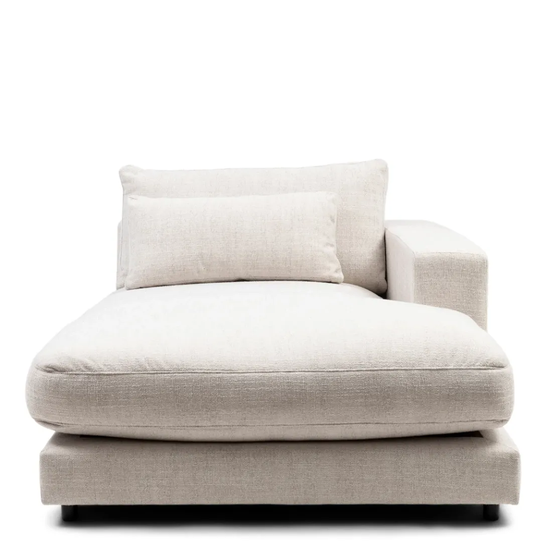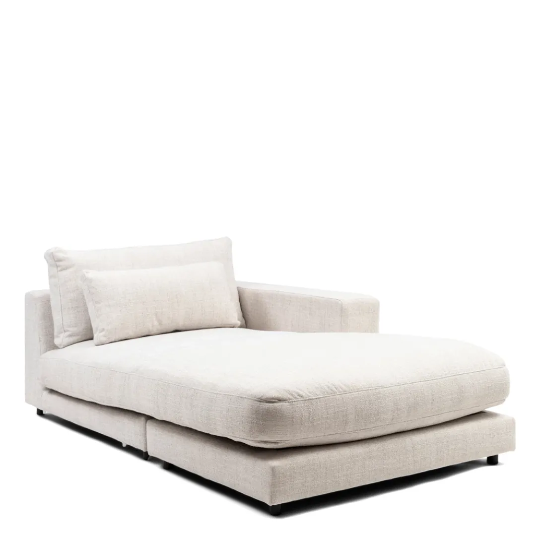 De Stephen-collectie is met deze chaise longue van de stof rich tweed in de kleur antique white helemaal compleet. Er is een variant voor aansluiting rechts en een voor aansluiting links, net wat bij jouw zithoek past. Maak je interieur helemaal af met dit stijlvolle meubelstuk. Het onderstel is van beukenhout.