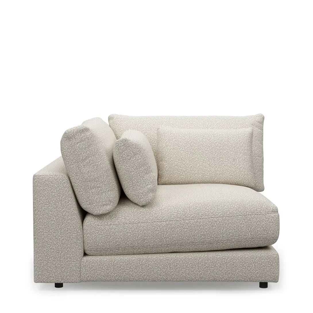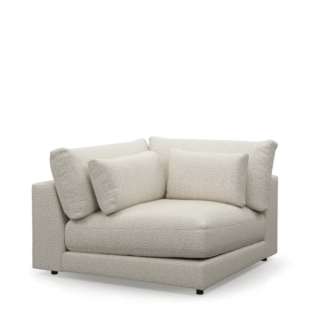 Maak kennis met de modulaire bankenserie Stephen. Dit is het hoekdeel met aan beide zijden een hoge rug. Hierdoor is hij ook perfect als losse loungestoel in het interieur te plaatsen. De bank heeft een lage, diepe zit en komt met extra losse kussens.