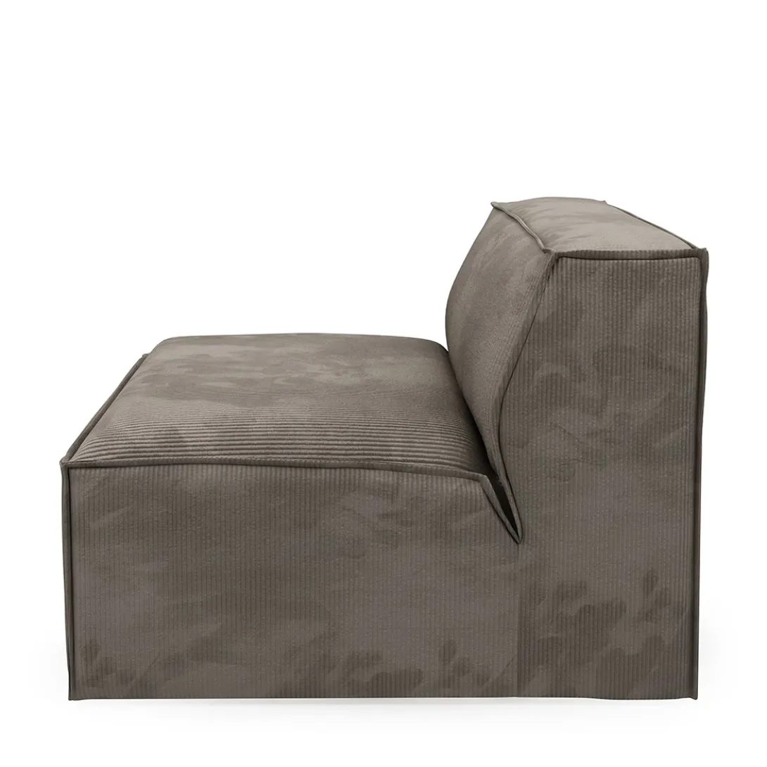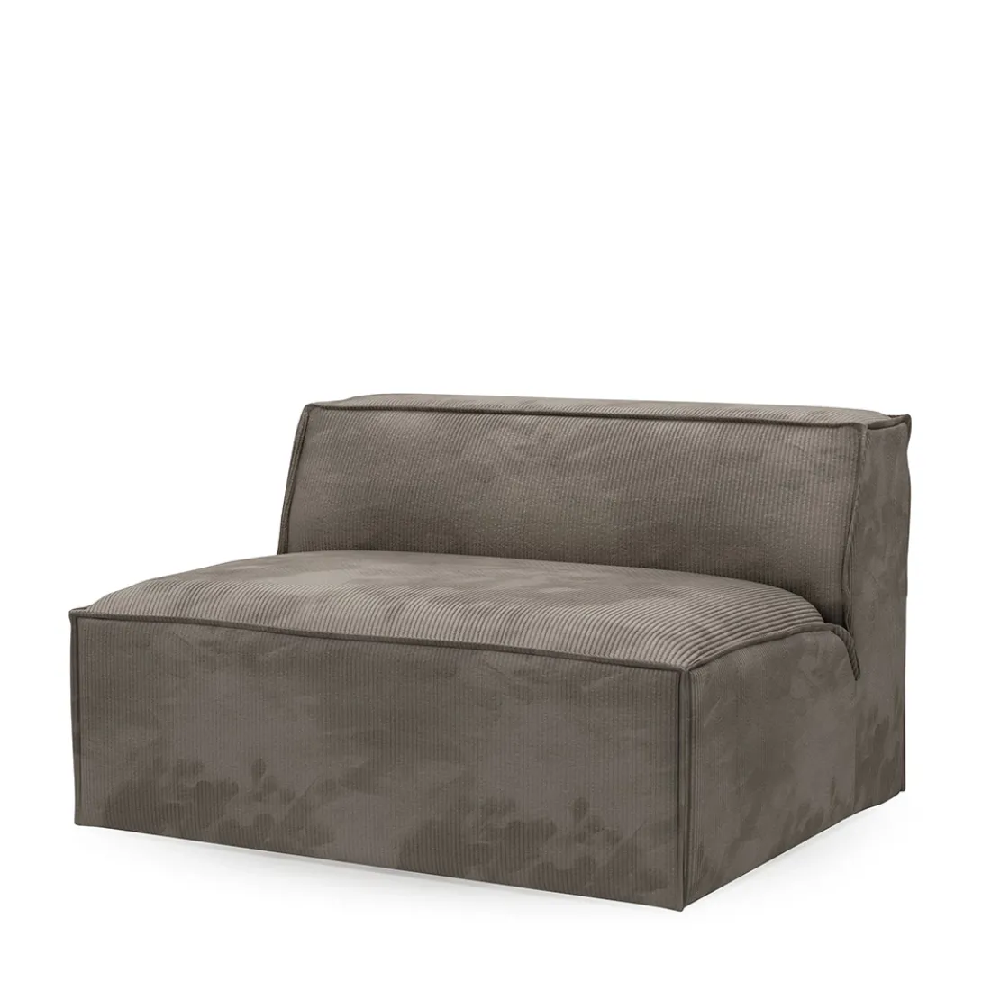 Dit stoere midden element van Jagger is een onderdeel uit één stuk. Gemaakt van beukenhout is het element niet te zwaar om desgewenst te verschuiven of op te tillen. De ribfluwelen bekleding is lekker zacht en in verschillende kleuren te krijgen. Het middelste element is er in 95 cm en in 125 cm. Op die manier kan er naar believen worden “gebouwd”.