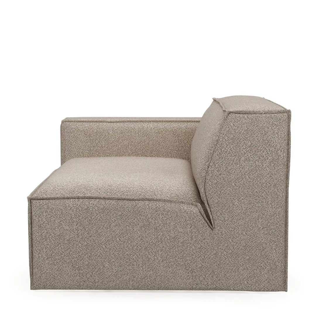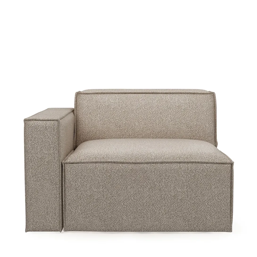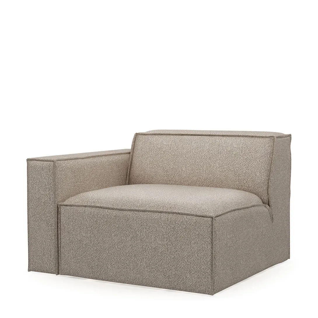 Deze moderne bank van bouclé in een warme zandkleur is een echte eyecatcher. De bank bestaat uit verschillende componenten die je zo samen kunt stellen om de bank perfect in jouw interieur te laten passen. Zo heb je altijd een bank die helemaal naar jouw smaak is. De losse delen zijn makkelijk aan elkaar te bevestigen en er zitten beukenhouten poten onder de bank. Deze linkerhoek is voorzien van een mooie, hoge leuning met een strakke afwerking.