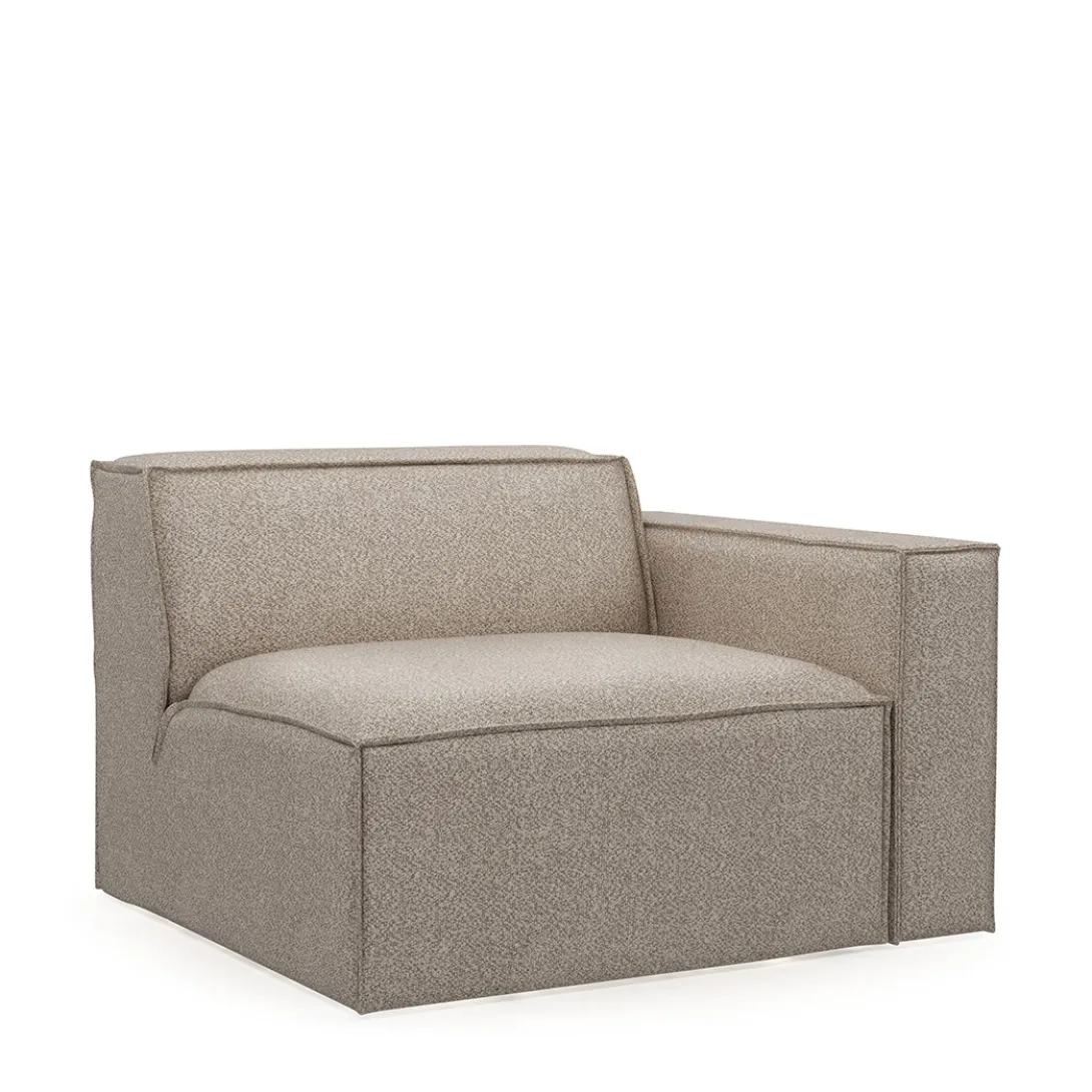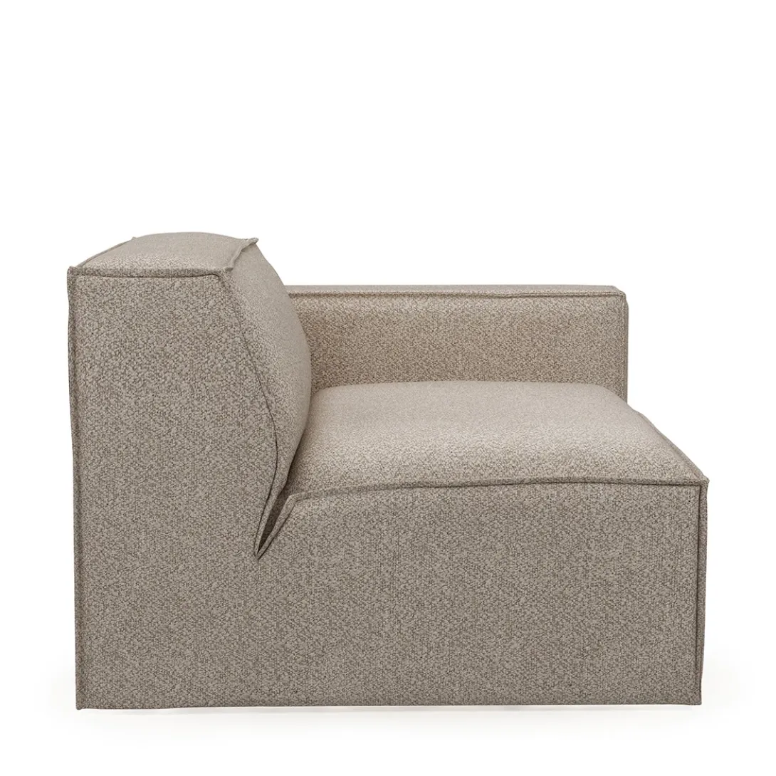 Deze moderne bank van bouclé in een warme zandkleur is een echte eyecatcher. De bank bestaat uit verschillende componenten die je zo samen kunt stellen om de bank perfect in jouw interieur te laten passen. Zo heb je altijd een bank die helemaal naar jouw smaak is. De losse delen zijn makkelijk aan elkaar te bevestigen en er zitten beukenhouten poten onder de bank. Deze rechterhoek is voorzien van een mooie, hoge leuning met een strakke afwerking.