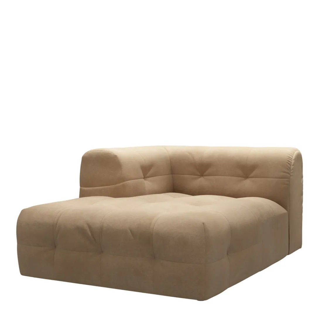 Lekker met de beentjes gestrekt, dat kan om dit chaise longue-deel links van The Jones modulaire bank. Dit linker chaise longue-element combineer je eenvoudig met de verschillende andere elementen uit deze serie, maar kun je natuurlijk los in de ruimte plaatsen. De bank heeft een bekleding die gecapitonneerd oogt, maar zonder de kenmerkende knoop, dit loopt door over alle zijden van de bank.