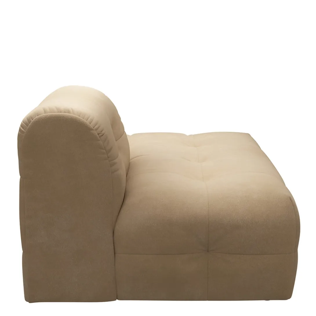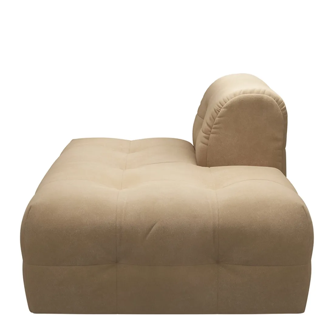 Combineer deze lounger rechts van modulaire bank The Jones met enkele andere elementen om zo je eigen droombank samen te stellen. Dit loungedeel heeft een leuning aan de lange kant rechts. De stoffering van deze bank heeft een gecapitonneerd patroon, maar dan zonder de knoop.