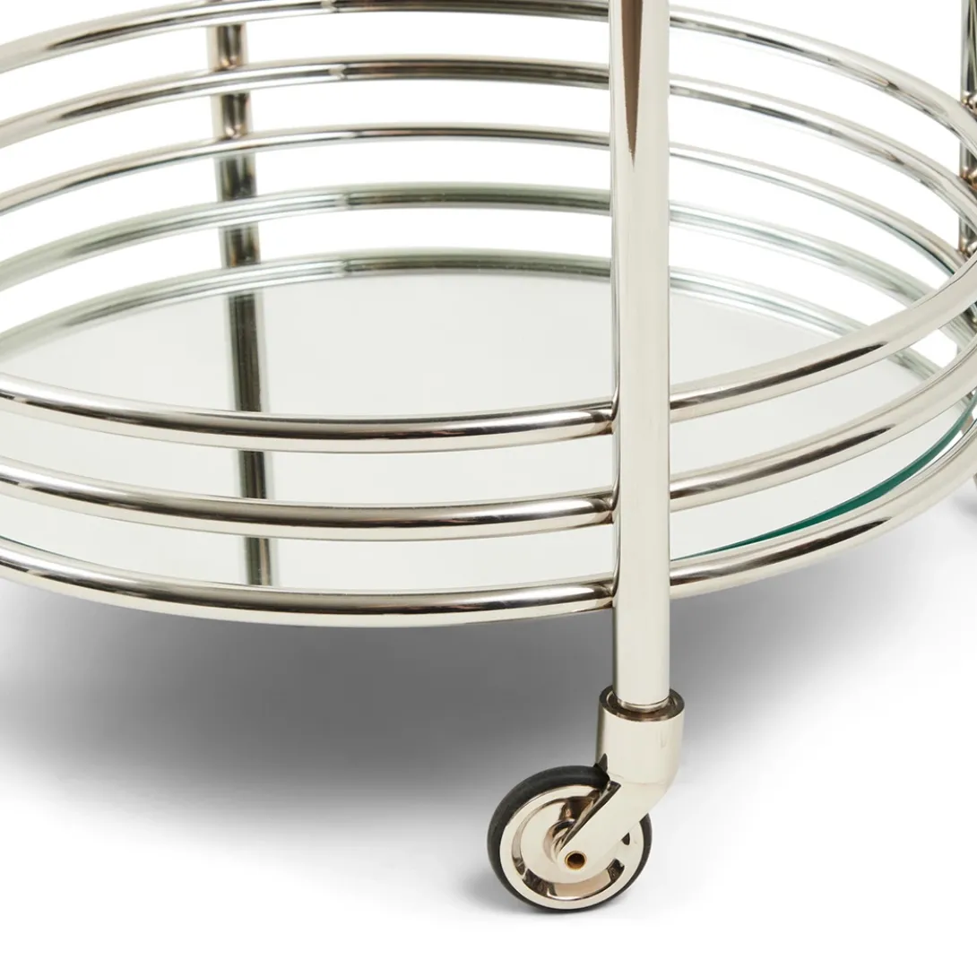Een rijdende bar, dat is nog eens luxueus. Naar believen laat u hem staan waar hij staat, of u rolt hem naar waar u hem wilt hebben. Gemaakt van prachtig glanzend metaal straalt deze assistent u tegemoet. Brengt alles mee wat u maar nodig heeft, als u hem tevoren even laadt. Met zijn twee bladen biedt hij volop plaats.