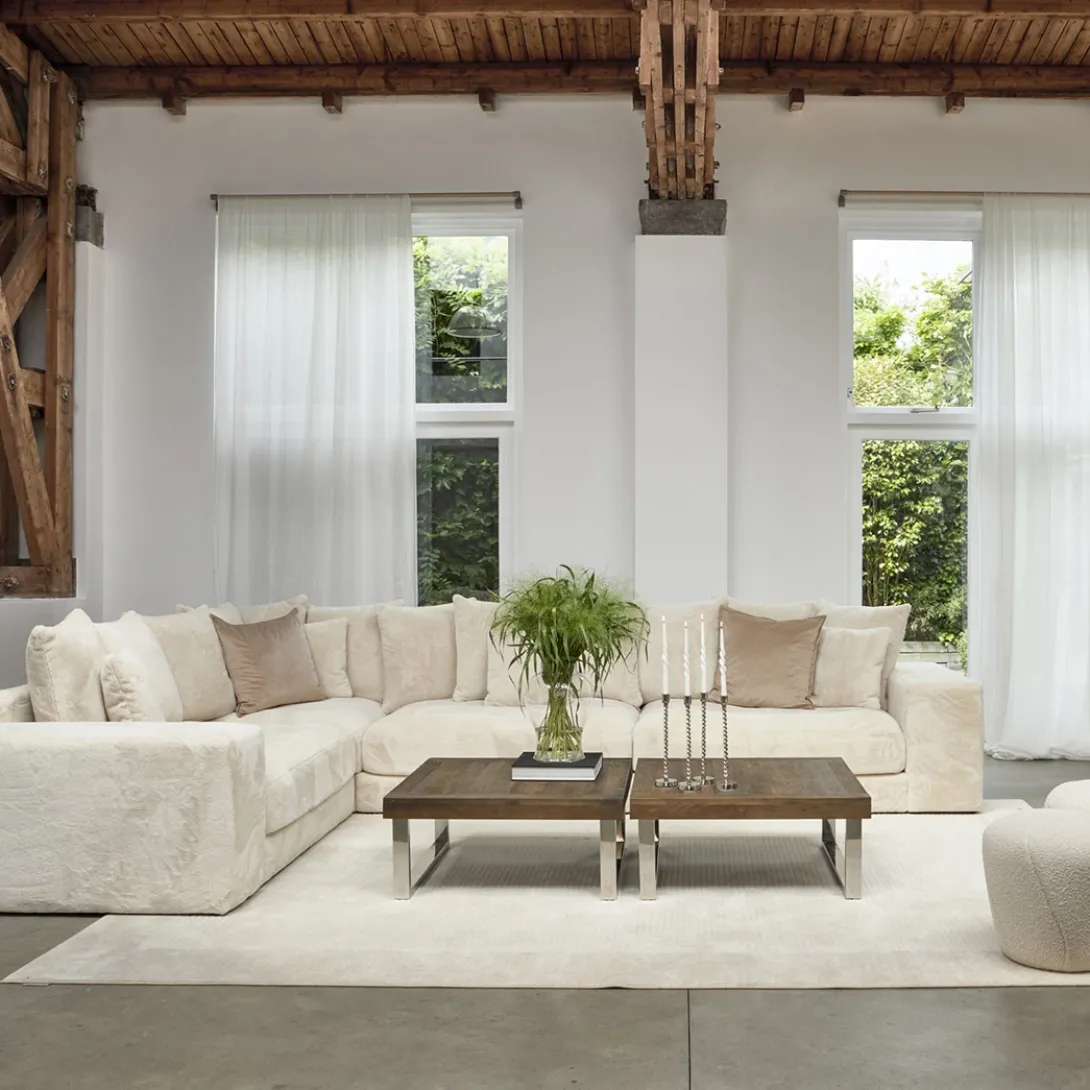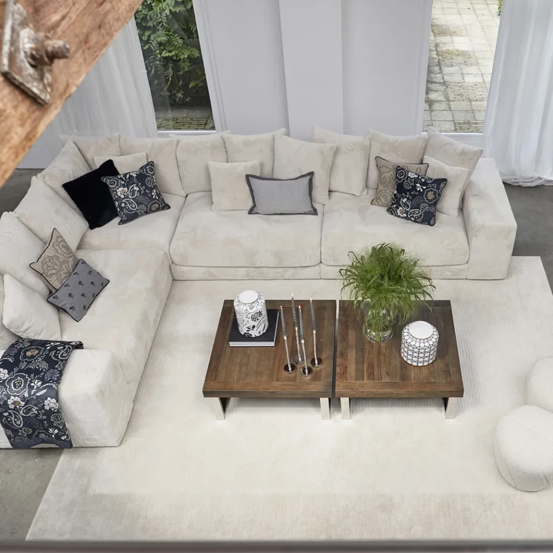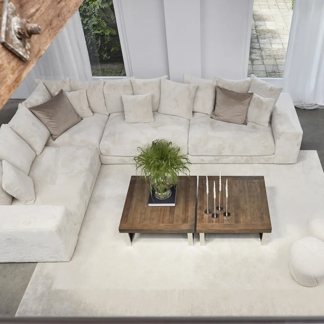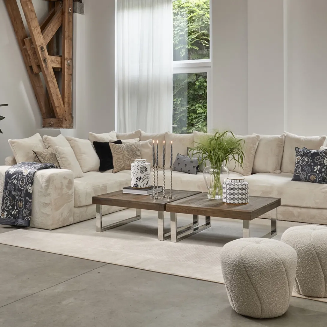 Bank Vail is een complete sofa bestaande uit meerdere delen, die je ook los kunt gebruiken. Je kunt bijvoorbeeld tussen de twee middendelen een losse salon- of bijzettafel plaatsen. Zo kun je spelen met de opstelling. Deze bank is verkrijgbaar met een rechter- of linkerhoek en komt onder andere in de prachtige bekleding ‘Polar Bear’, een geweldige faux fur.