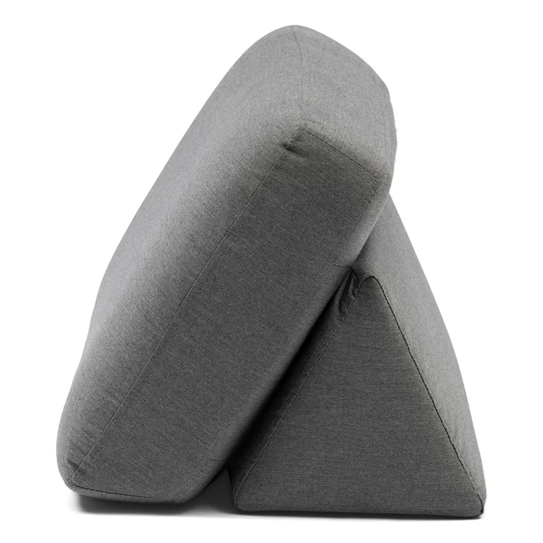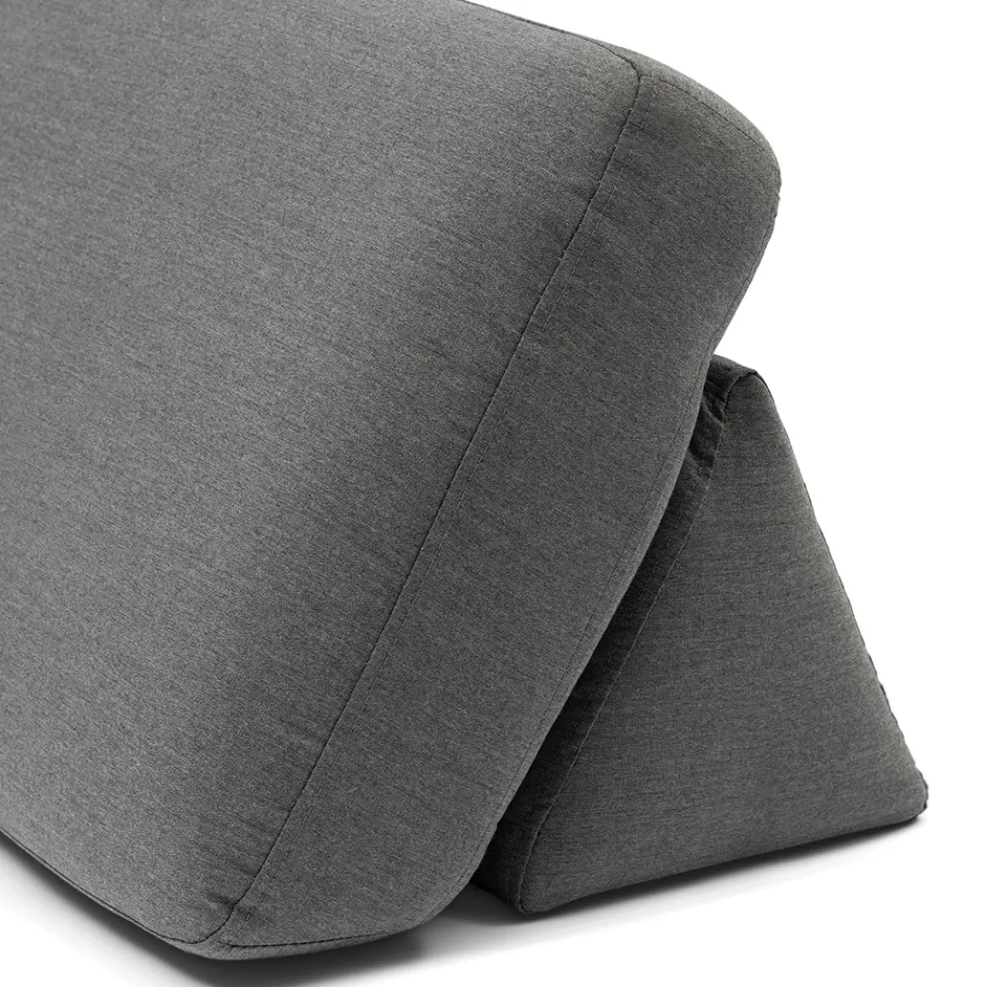 Twee kussens in dezelfde kleur voor extra comfort in je outdoor loungeset. Een driehoek voor extra steun, en een lekker kussen om er tegenaan te leggen. Allebei gemaakt van weerbestendig materiaal, natuurlijk. Dus een regenbui doet ze niets. Ze zijn er in vier kleuren.
