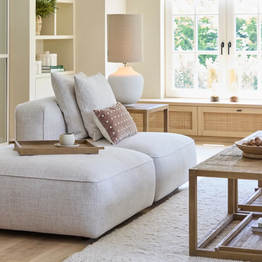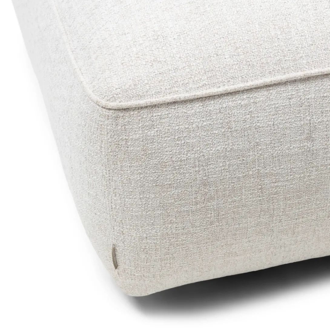 - Deze voetenbank in Antique White gemêleerde, rijke stof biedt niet alleen extra comfort naast de Hamilton bank, maar kan ook als aanvullende zitplaats dienen. Het luxe materiaal en de verfijnde uitstraling voegen een elegante touch toe aan je interieur, waardoor je zowel functionaliteit als stijl krijgt.