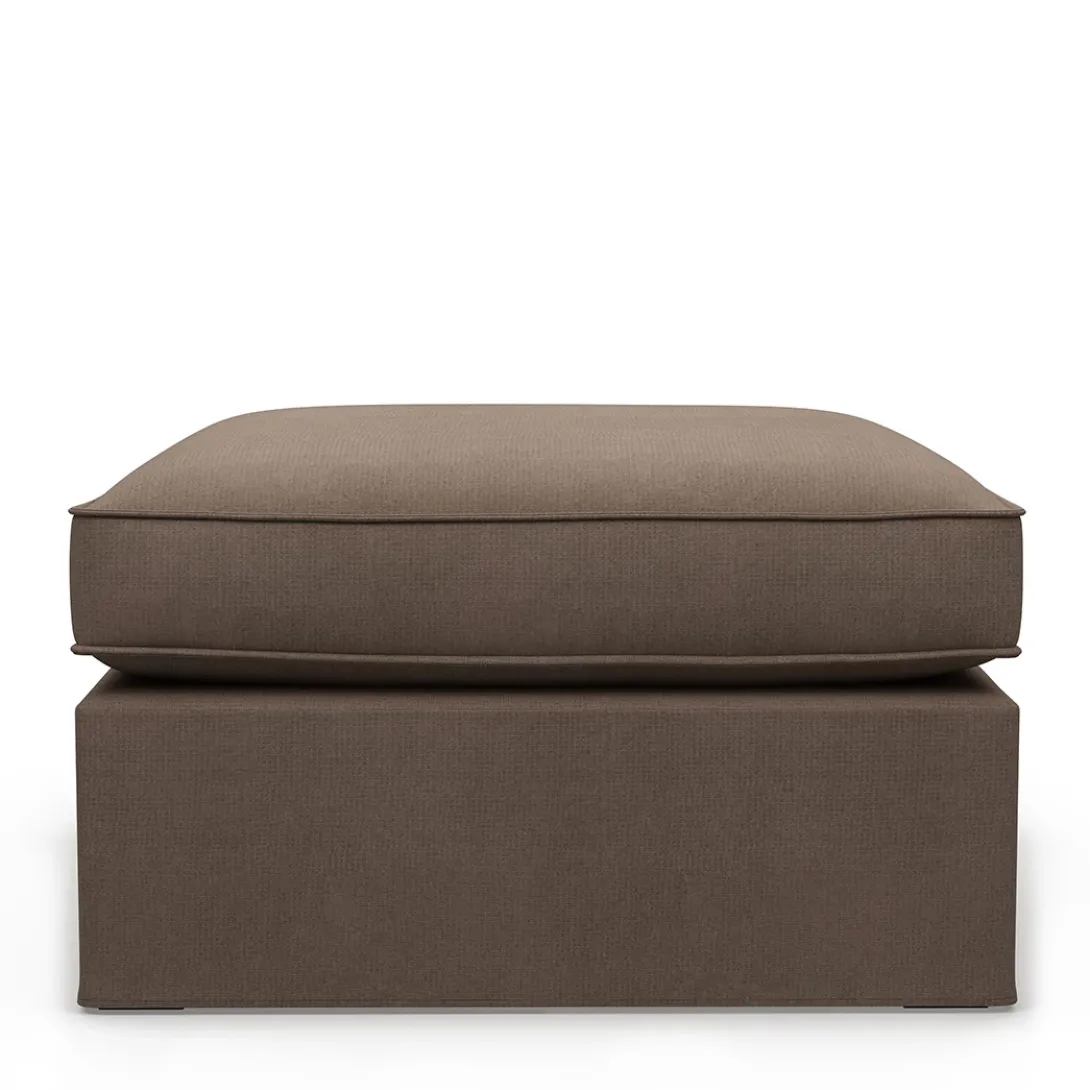 Vierkante poef in de Lennox-serie, in recycled weave in de kleur bottle brown, die uitstekend past bij de rest van je zithoek. Lekker dik kussen biedt comfort voor zowel je voeten als wanneer je hem als extra zitplaats gebruikt.